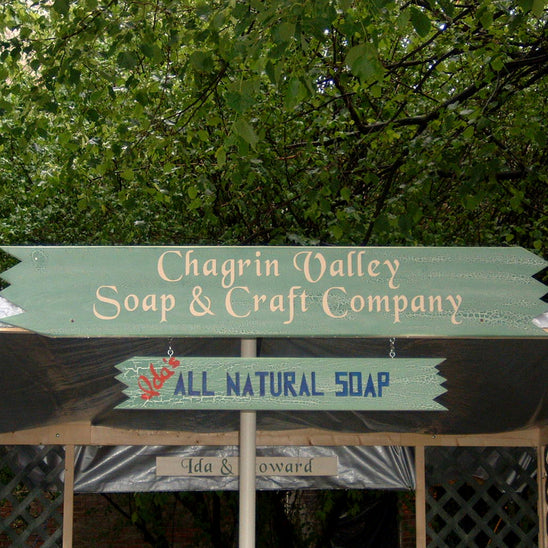 The business needed a name. Ida and Howard live in Chagrin Falls. Their home overlooks the Chagrin River in a region called the Chagrin Valley. Ida makes soap and Howard makes woodcrafts, thus Chagrin Valley Soap & Craft is born.